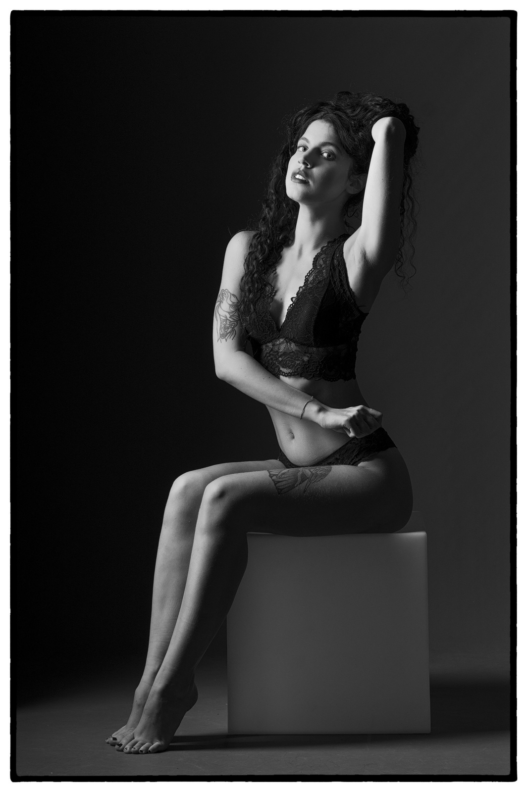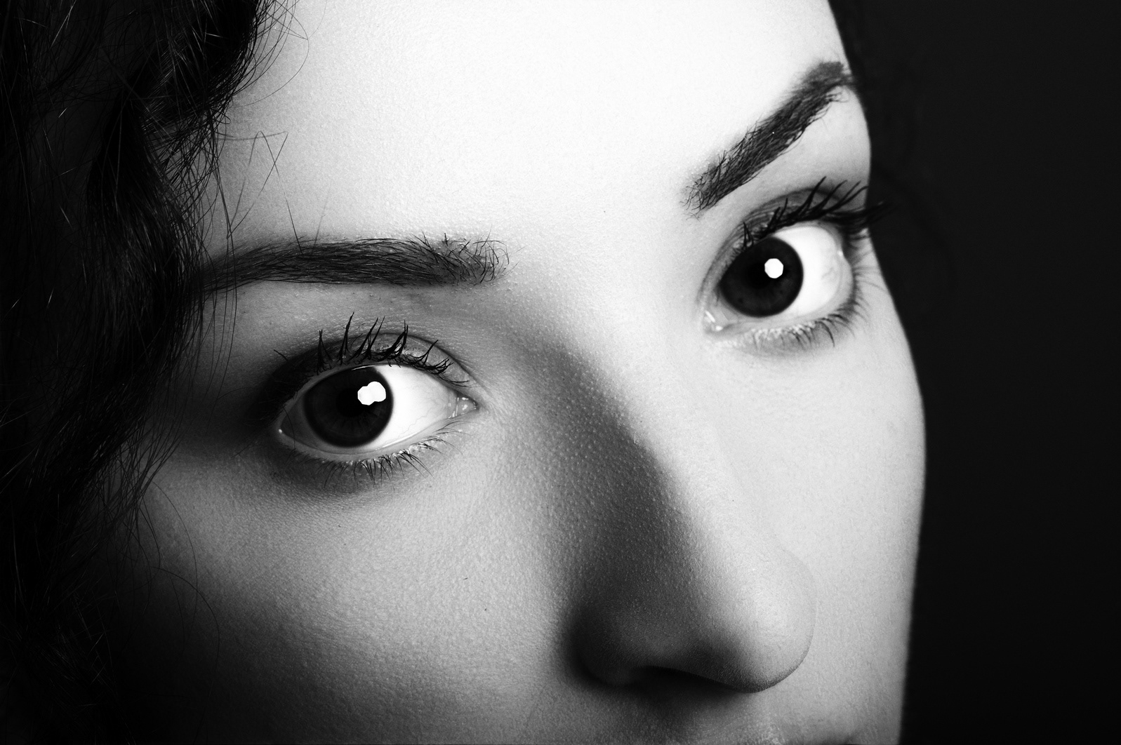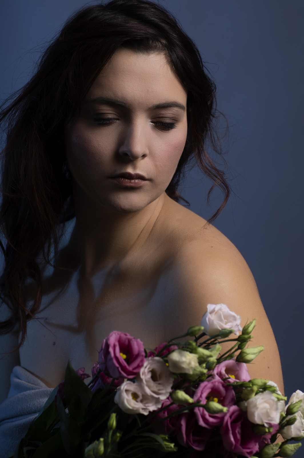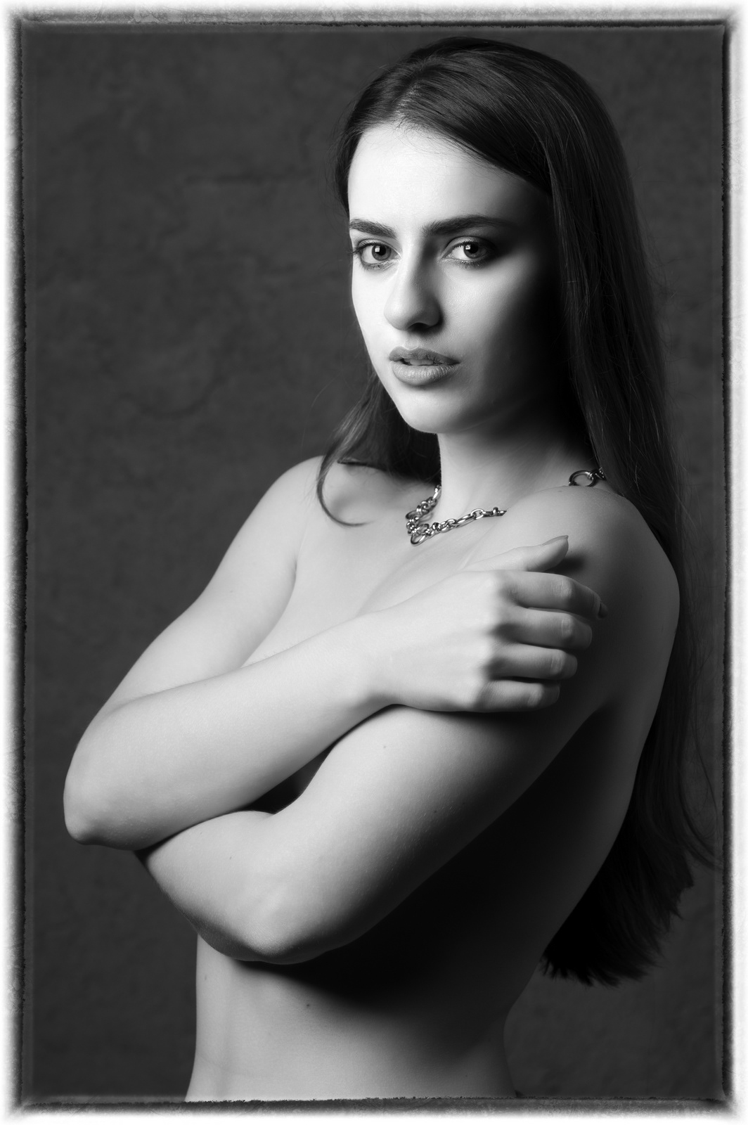 Le finali sono una medusa, cui si è prestata l’amica ballerina Giusi Settimo, che ho stampato in formato molto grande, a rappresentare il periodo che vivevamo (quella immediatamente precedente mostra i bellissimi occhi di Giusi senza il trucco per rassicurarvi che è una bella ragazza e non il mostro), mentre nell'altra c'è una delle mie modelle preferite, nonché grande amica, Valentina, che mi asseconda da anni in queste mia insana passione fotografica, e qui dovrebbe rappresentare una immagine pittorica della Maddalena penitente.