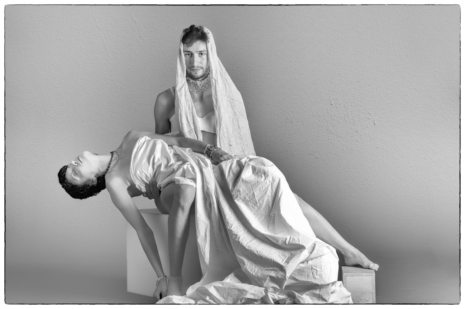 Due amici e care persone con cui ho giocato sul tema di due delle pietà michelangiolesche e poi le altre seguono senza un ordine preciso. Immagini scattate per il piacere di scattarle, senza un tema preciso, salvo quello di tenere conto del rapporto persona, ritratto, corpo.